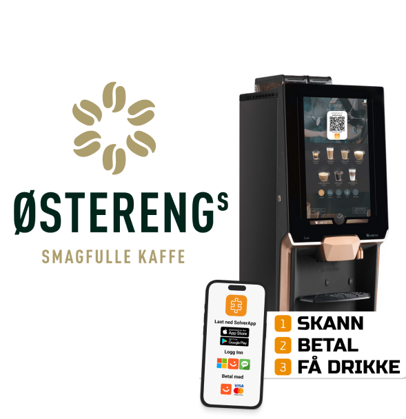 Solver sammarbeider i dag med Østereng kaffe som leverer ferdig kaffemaskin med betalingsløsning, gratis teknisk service, support og varer fraktfritt levert ved tegning av løpende avtale eller bindingstid 60 Mnd.